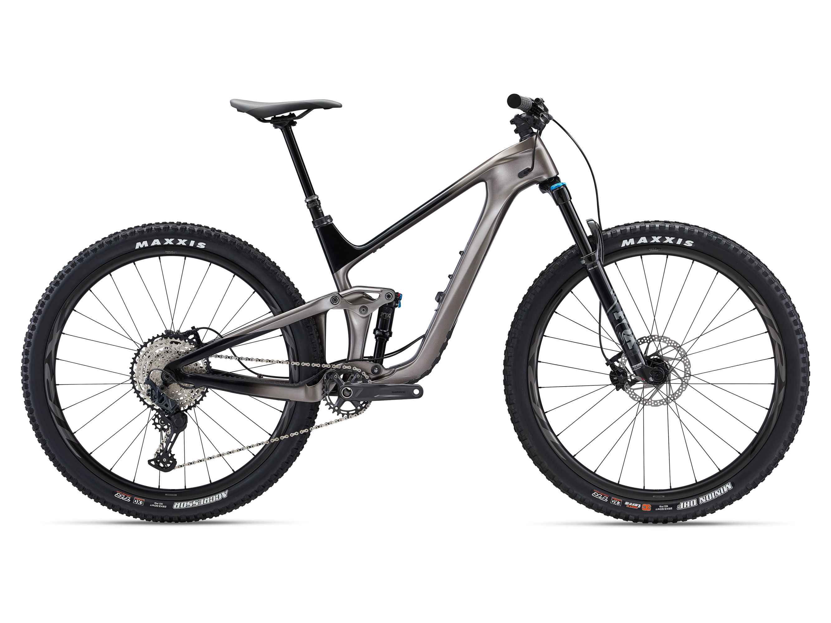 - Vidlica: Fox 34 Float Rhythm, 130mm, GRIP damper, Boost 15x110 Kabolt, 44mm offset, custom tuned for Giant