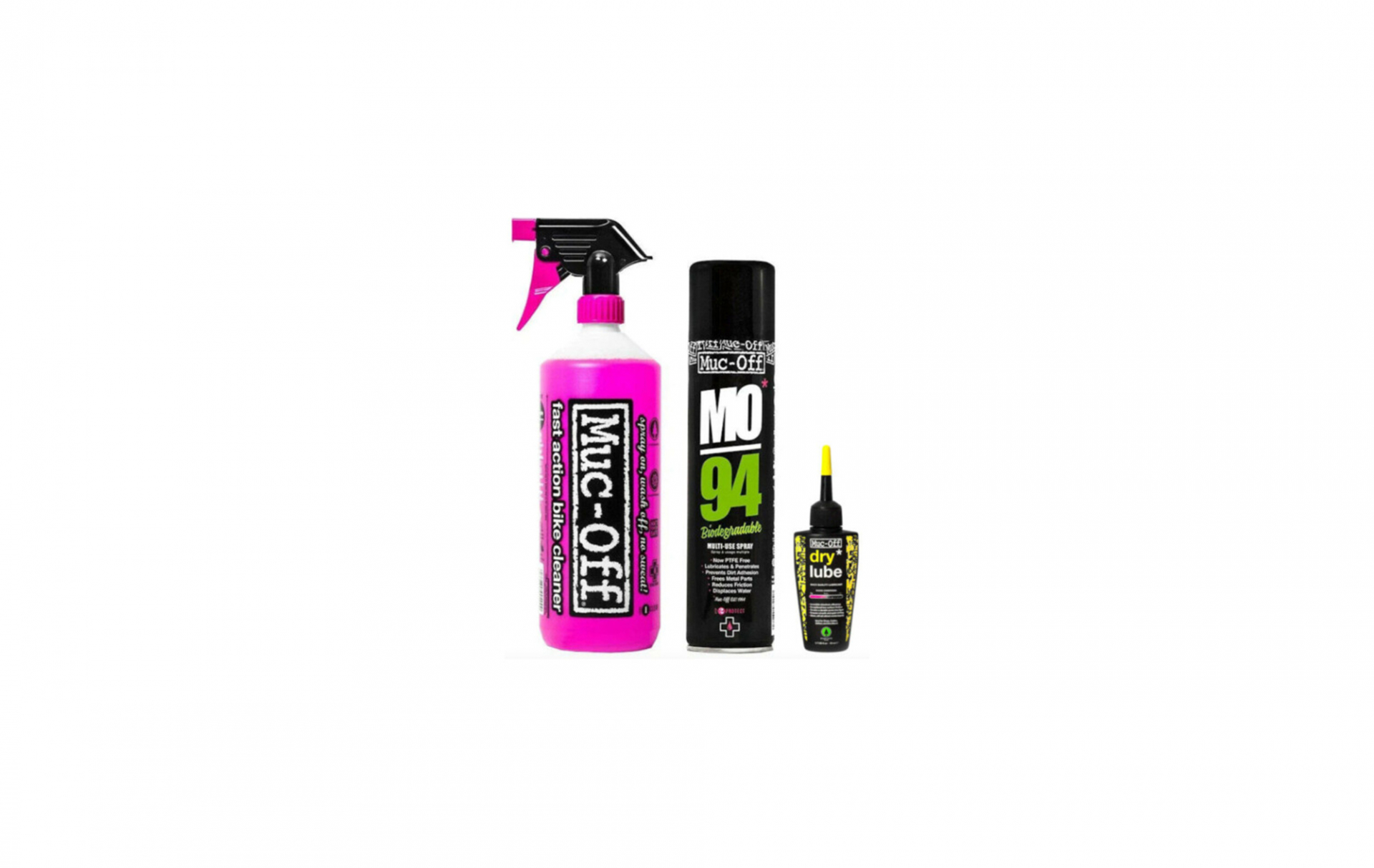 Čistiaci set MUC-OFF WASH, PROTECT AND LUBE KIT (DRY LUBE) obsahuje tri z najobľúbenejších produktov na čistenie, ochranu a mazanie, ktoré si hravo poradia so špinou a udržia váš bicykel v hladkom chode.