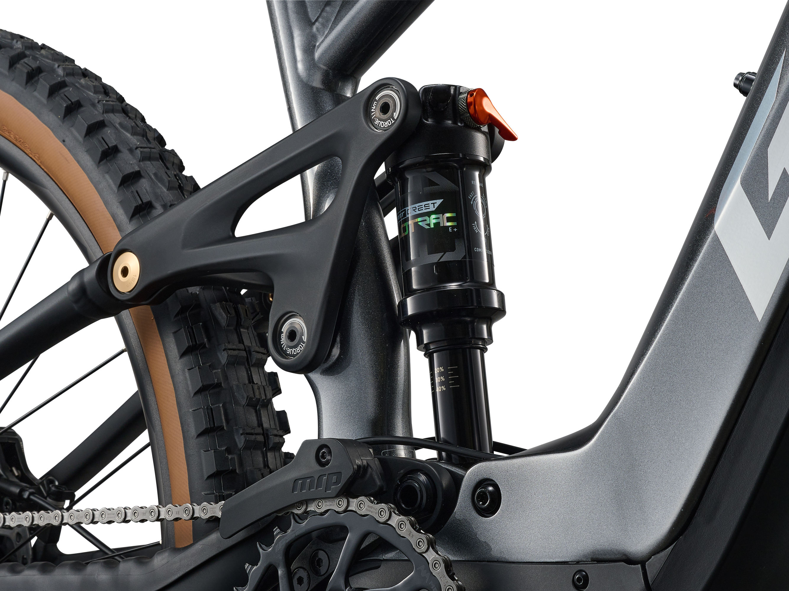 • Tlmič: Giant Crest FloTrac, 3-position lever, e-bike optimized, 185x52.5mm Sag recommendation: 30% (15.75mm)