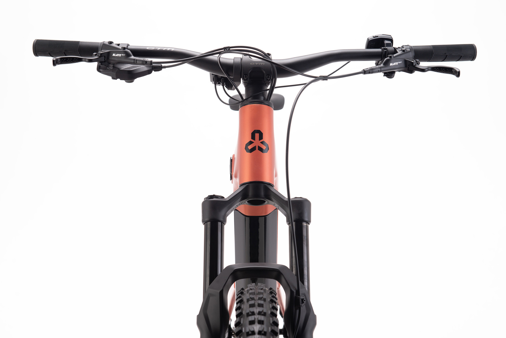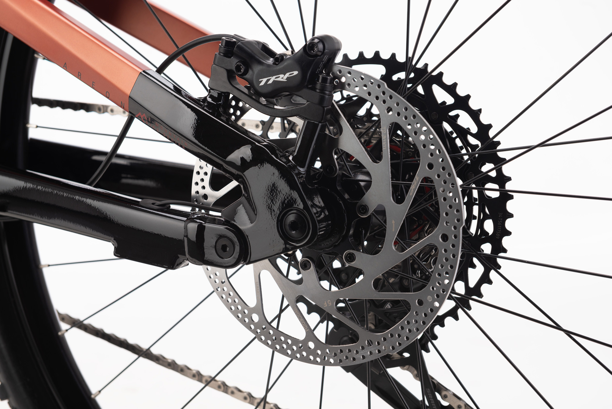 - Brzdy: TRP SLATE EVO-HD-M807, four pistons/203mm