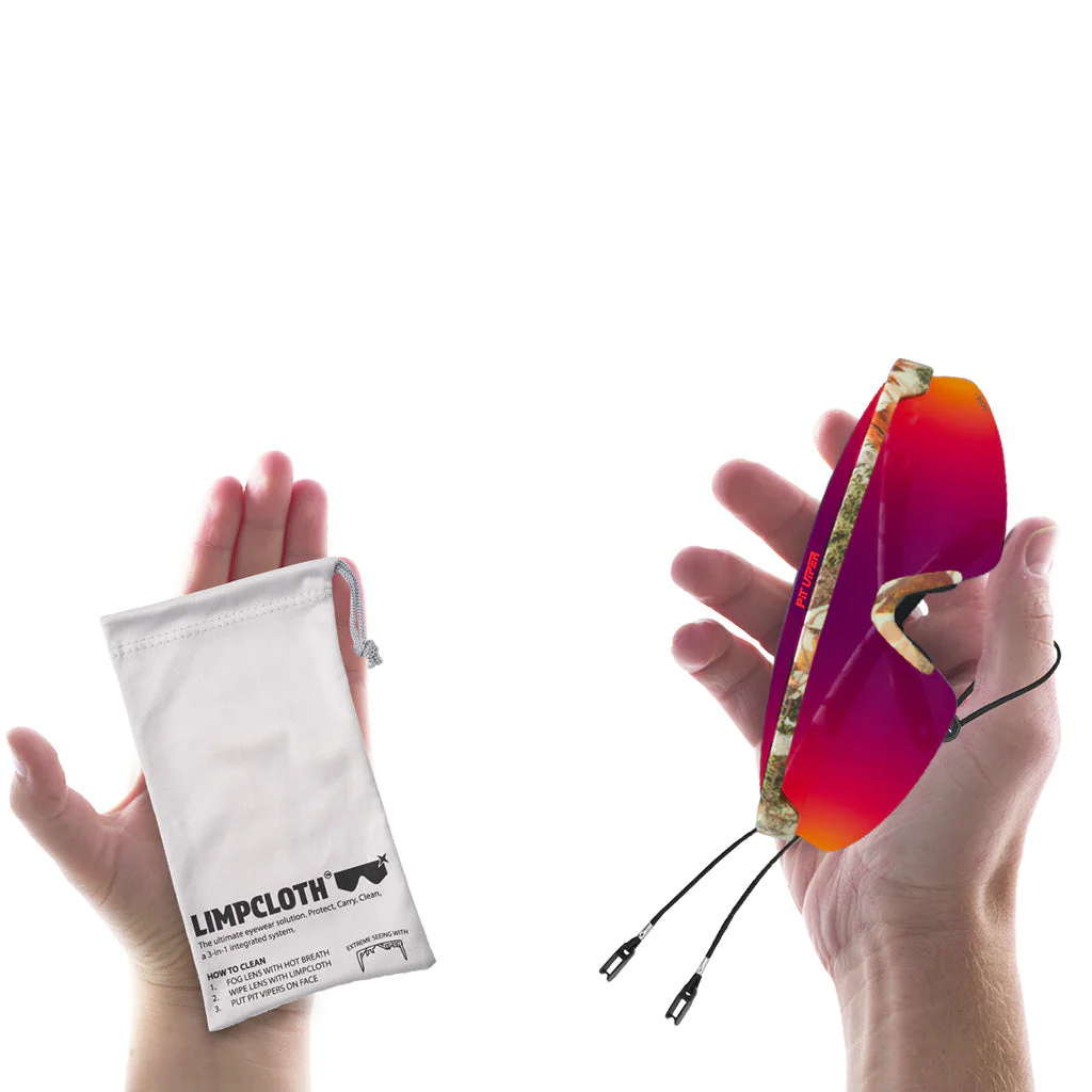 • Okuliare Pit Viper čistite handričkou Limpcloth™ (súčasťou každého páru okuliarov Pit Viper) a horúcim dychom z úst alebo čistiacim prostriedkom na okuliare.