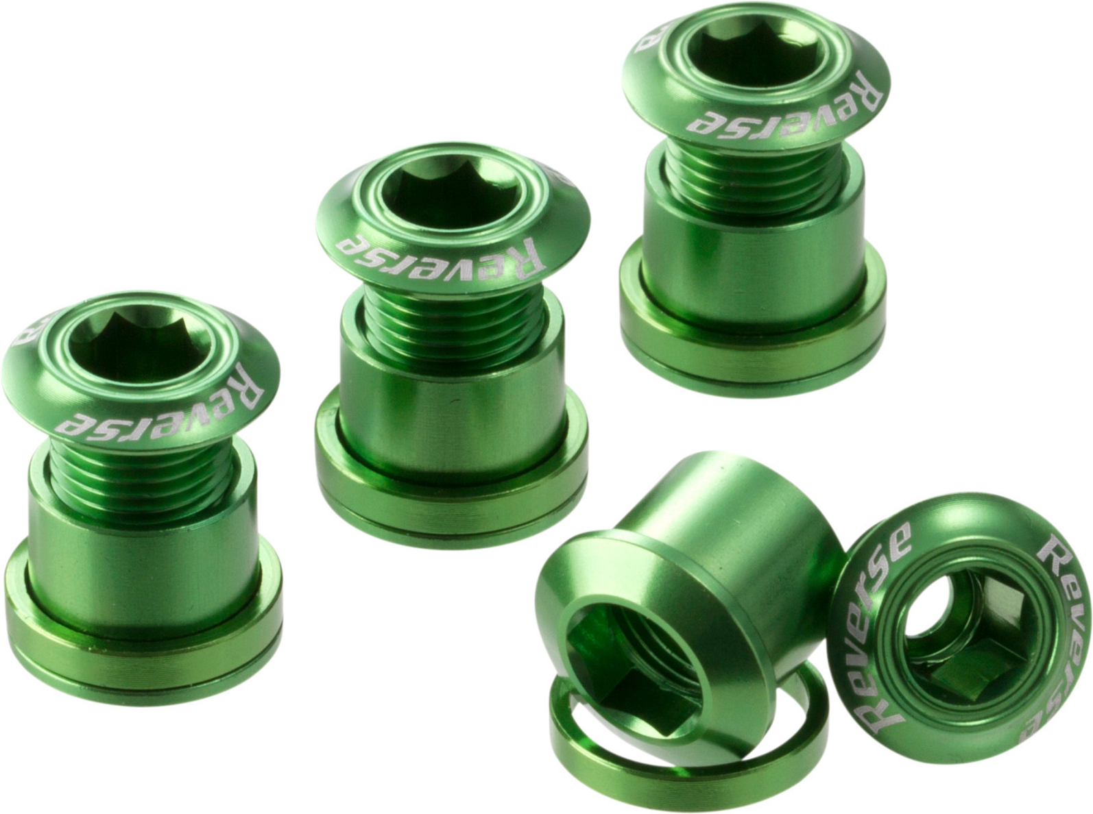 Skrutky do prevodníka MTB REVERSE CHAINRING BOLT SET sú ľahké a farebné skrutky prevodníka od Reverse Components.