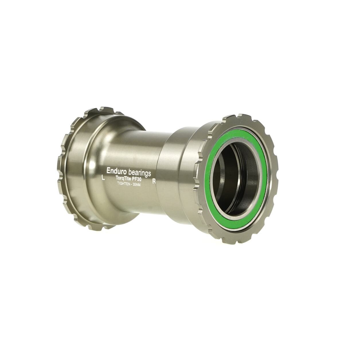 Stredové zloženie ENDURO BEARINGS BKSR-0132, PF30, 30mm NARROW, TORQTITE, STAINLESS je stredové zloženie pre PF30 rámy a 30mm NARROW osky. Originálne riešenie od Enduro Bearings – systém Torqtite využíva radiálne ložiská z nerezovej ocele 440C, ktoré sú uložené v precízne obrábaných hliníkových miskách. Tie sa zoskrutkujú priamo vo vnútri stredovej mufny, čo poskytuje bezpečnú, pevnú a vŕzganie odolnú inštaláciu do rámov s Press-Fit systémom (PF30).