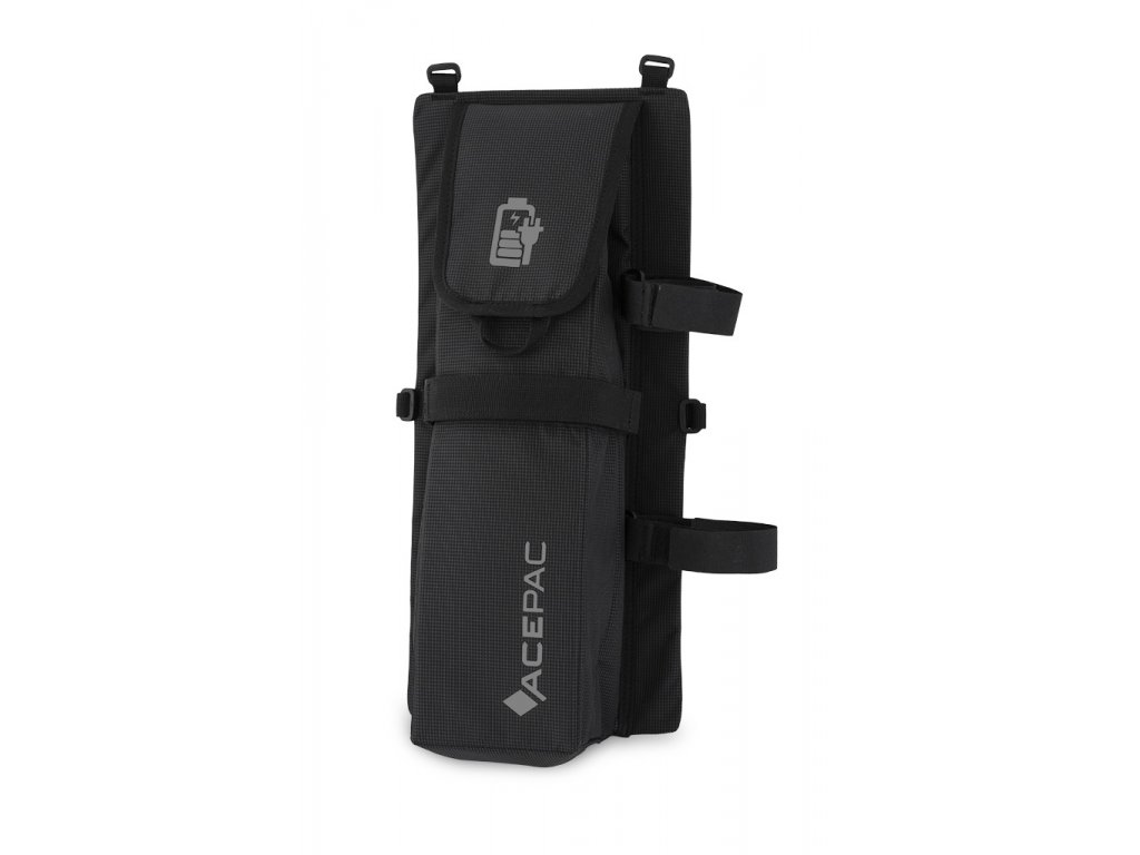 Taška pre batériu elektrobicykla MTB ACEPAC BATTERY MKII, ktorá obsahuje dva velcro popruhy pre nabíjačku a káble.